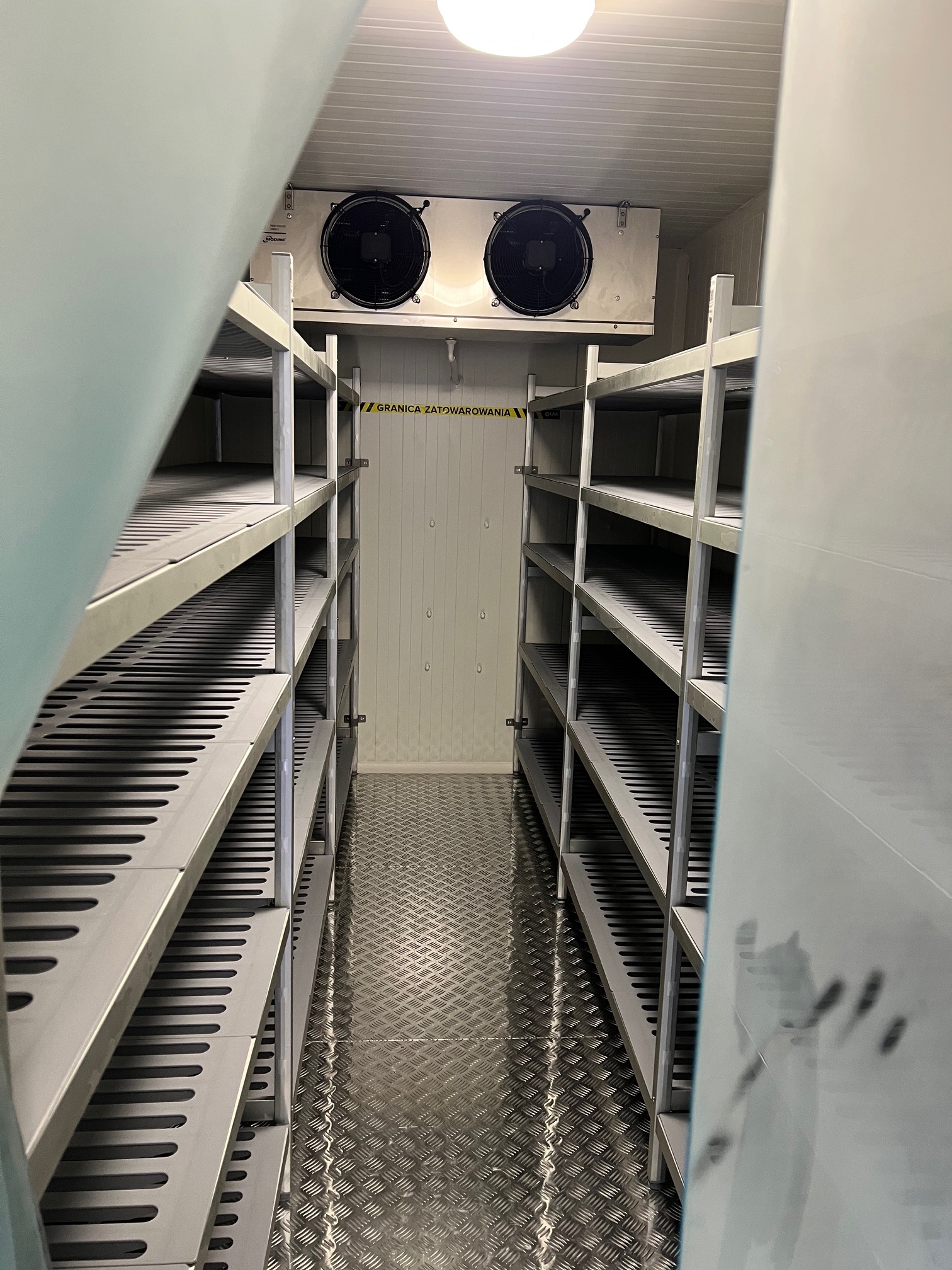 Komory zostały wyposażone w regały z głębokimi półkami umożliwiającymi składowanie dużej ilości towarów. Komora posiada również system odszraniana gorącymi gazami zapewniający szybkie i energooszczędne odszanianie szczególnie przydatne w przypadku składowania dużych ilości towarów.