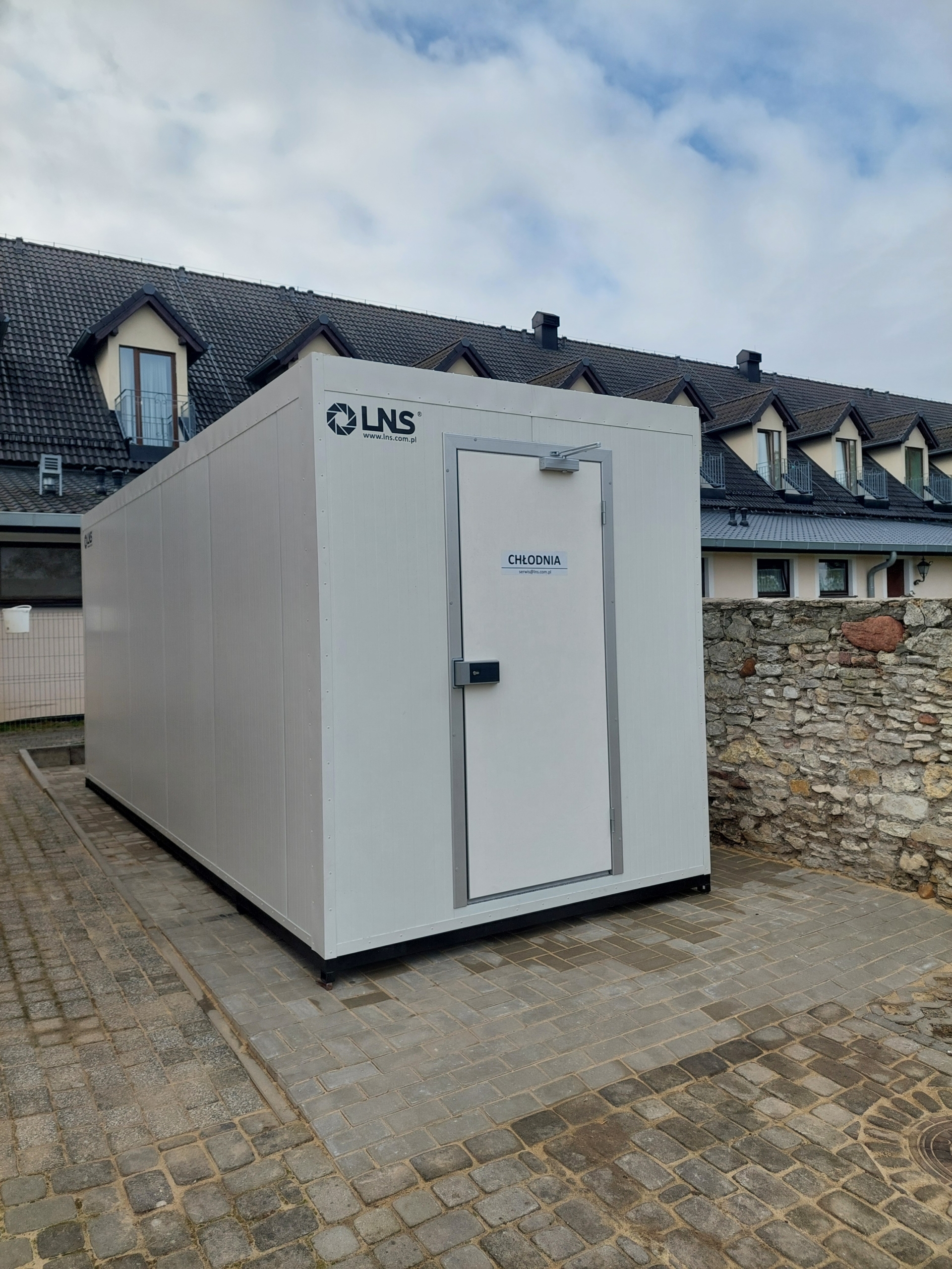 Dla Sebastianeum Silesiacum w Kamieniu Śląskim zrealizowaliśmy dostawę nowoczesnej komory chłodniczo-mroźniczej o długości 6 metrów. Urządzenie zostało dostarczone w całości i precyzyjnie ustawione w miejscu docelowym przy użyciu dźwigu HDS. Po stronie klienta wymagane było jedynie przygotowanie wypoziomowanego podłoża oraz zapewnienie przyłącza elektrycznego.